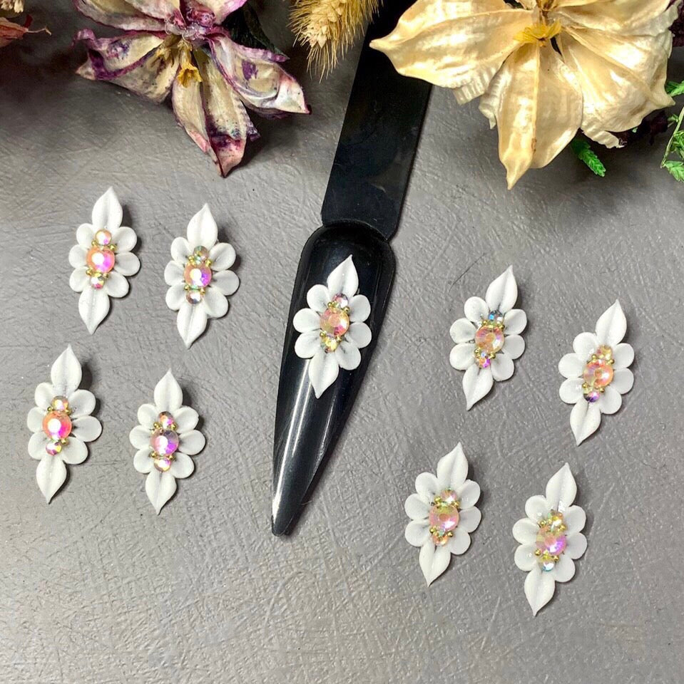 - Made of high quality white acrylic nail powder with one AB crystal.
