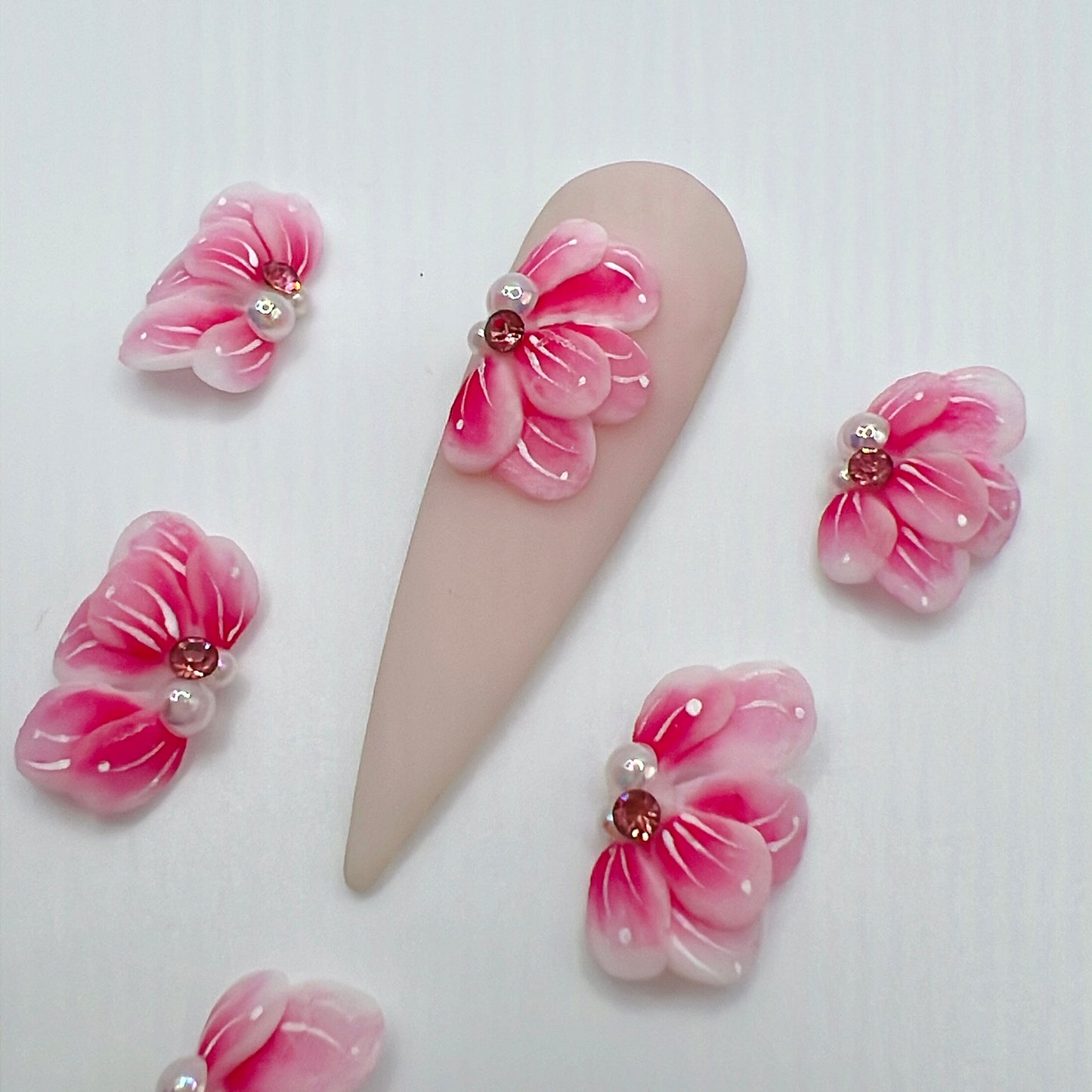 3D Nail Flowers - Pink Acrylic Flowers are Designed 100 % Handmade by Acrylic Powder. With the design underneath of the flowers, it helps to apply on the nail easily.
