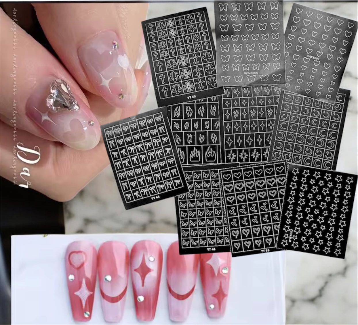 Airbrush Nail Sticker Heart Star Butterfly (Sticker dặm design nails Art)