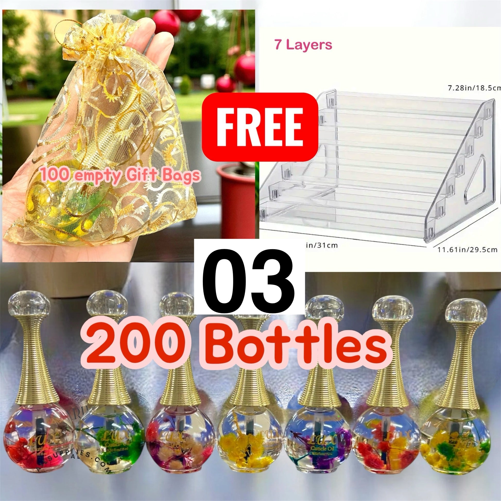 NEW 2026 - COMBO CUTICLE OIL GIFT set - 200 bottles FREE 200 bags + Rack or 10pcs Gold Oil