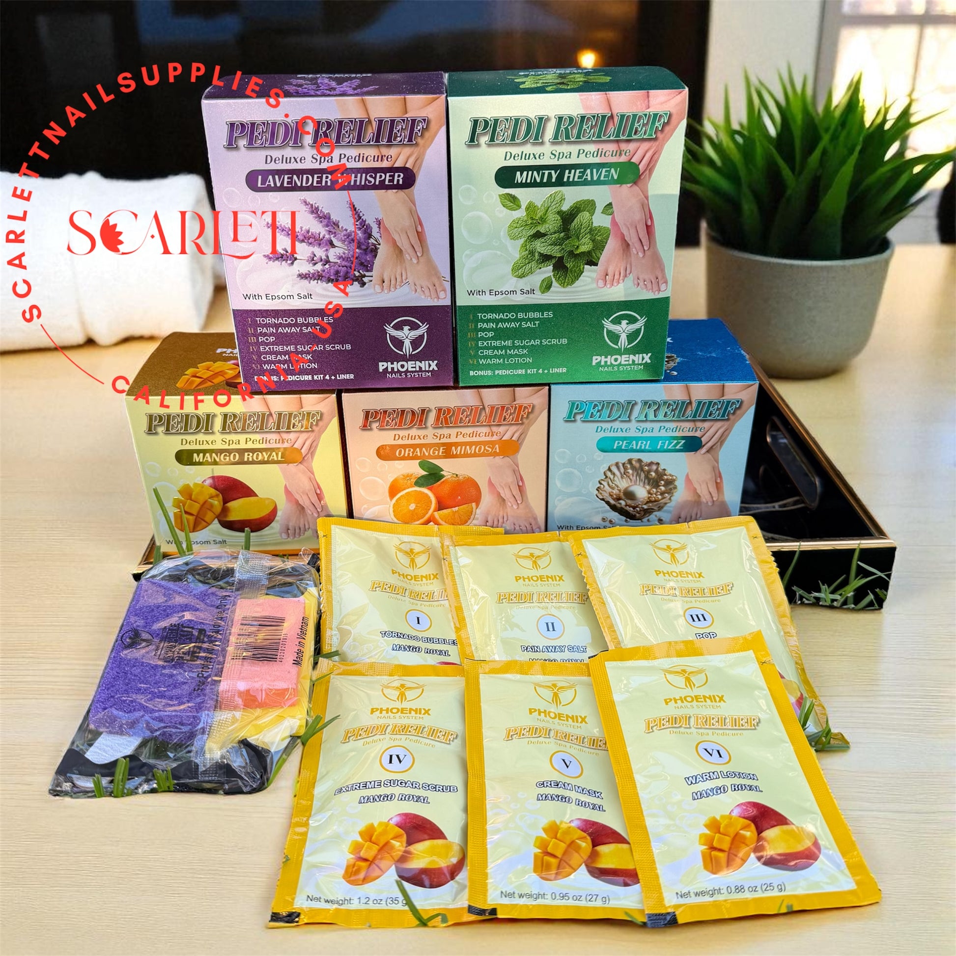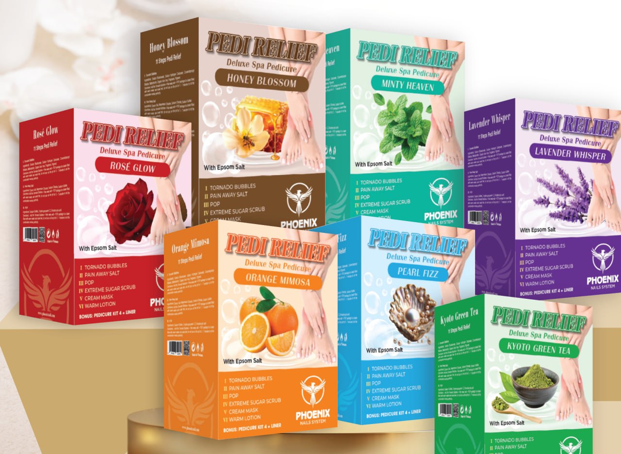 Designed for a truly therapeutic pedicure experience, the Phoenix Pedi Relief Kit begins with an indulgent 3-step soak ritual that transforms tired feet from the very first moment.