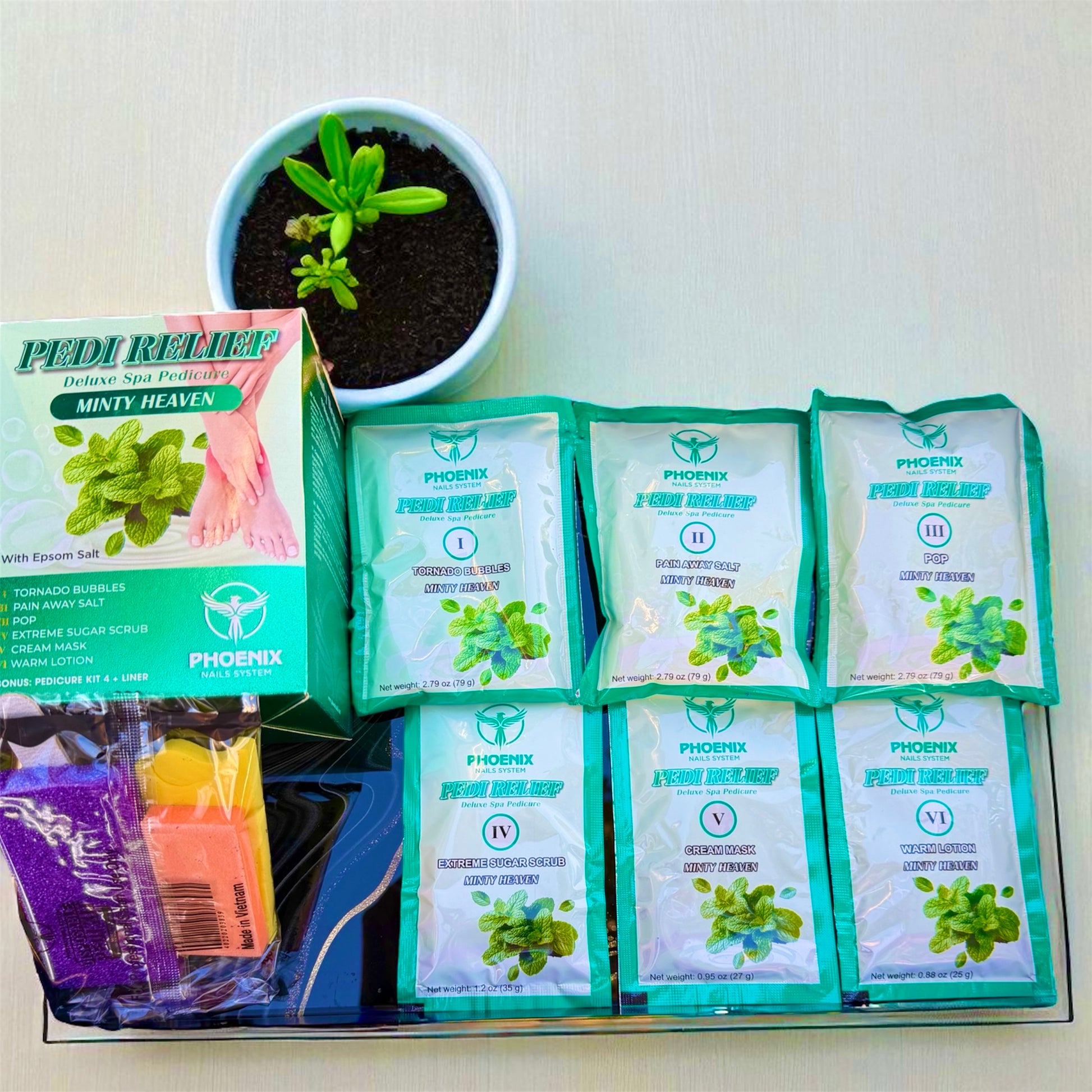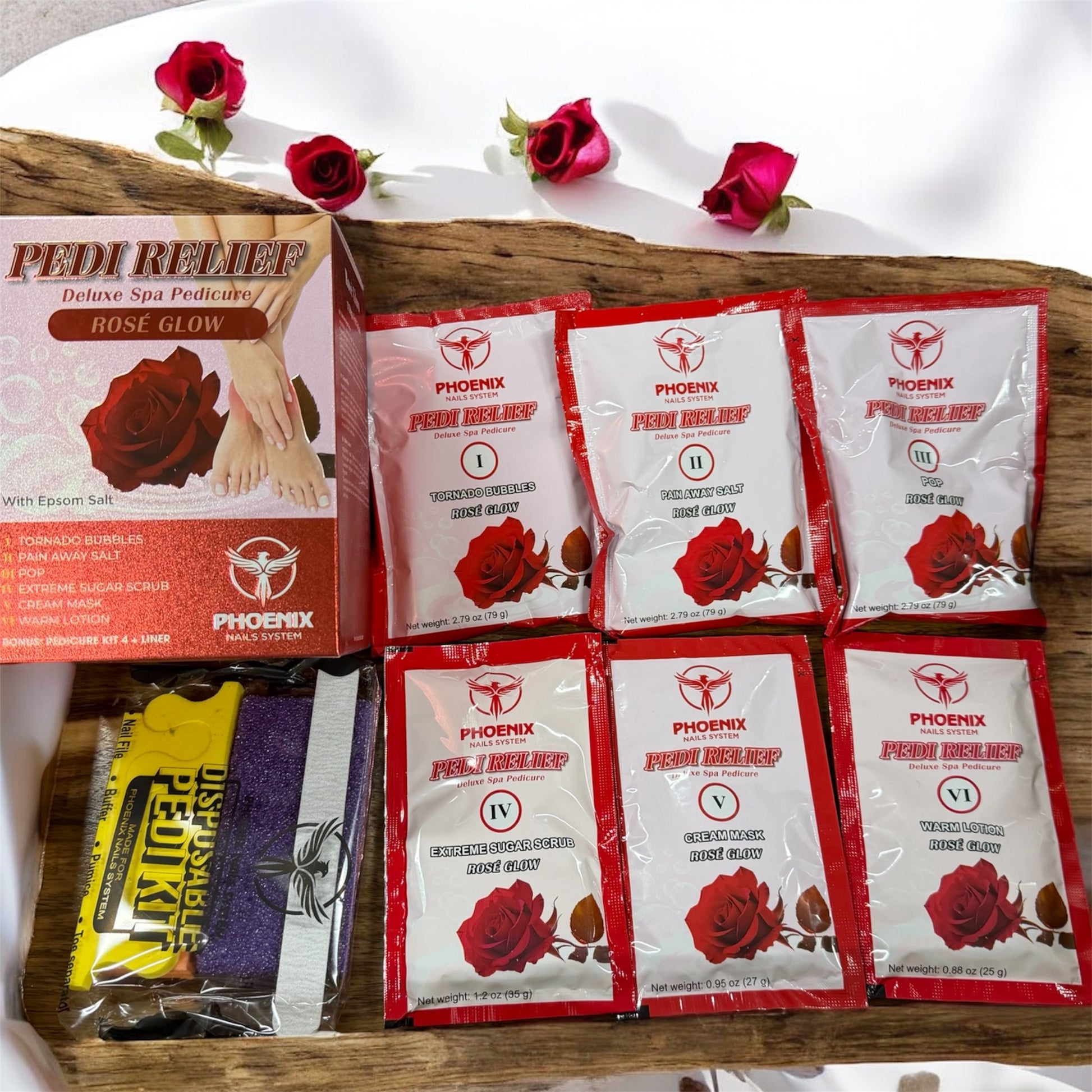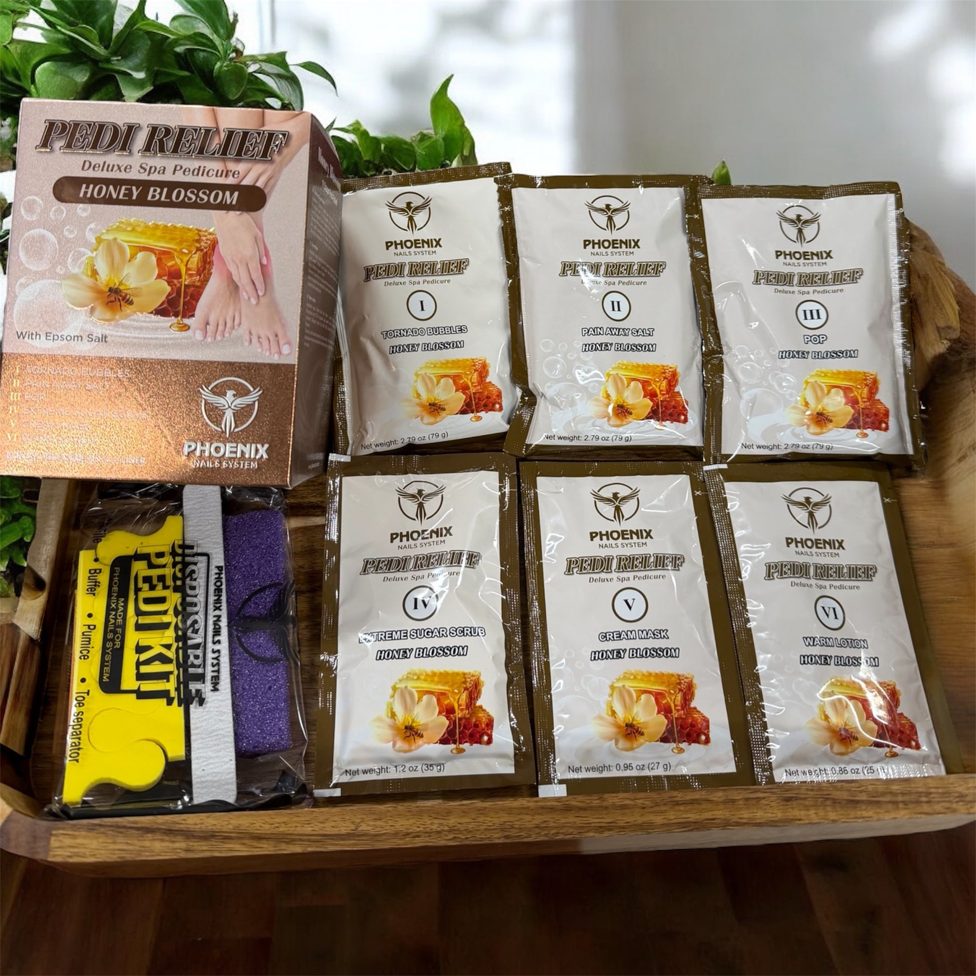 Designed for a truly therapeutic pedicure experience, the Phoenix Pedi Relief Kit begins with an indulgent 3-step soak ritual that transforms tired feet from the very first moment.