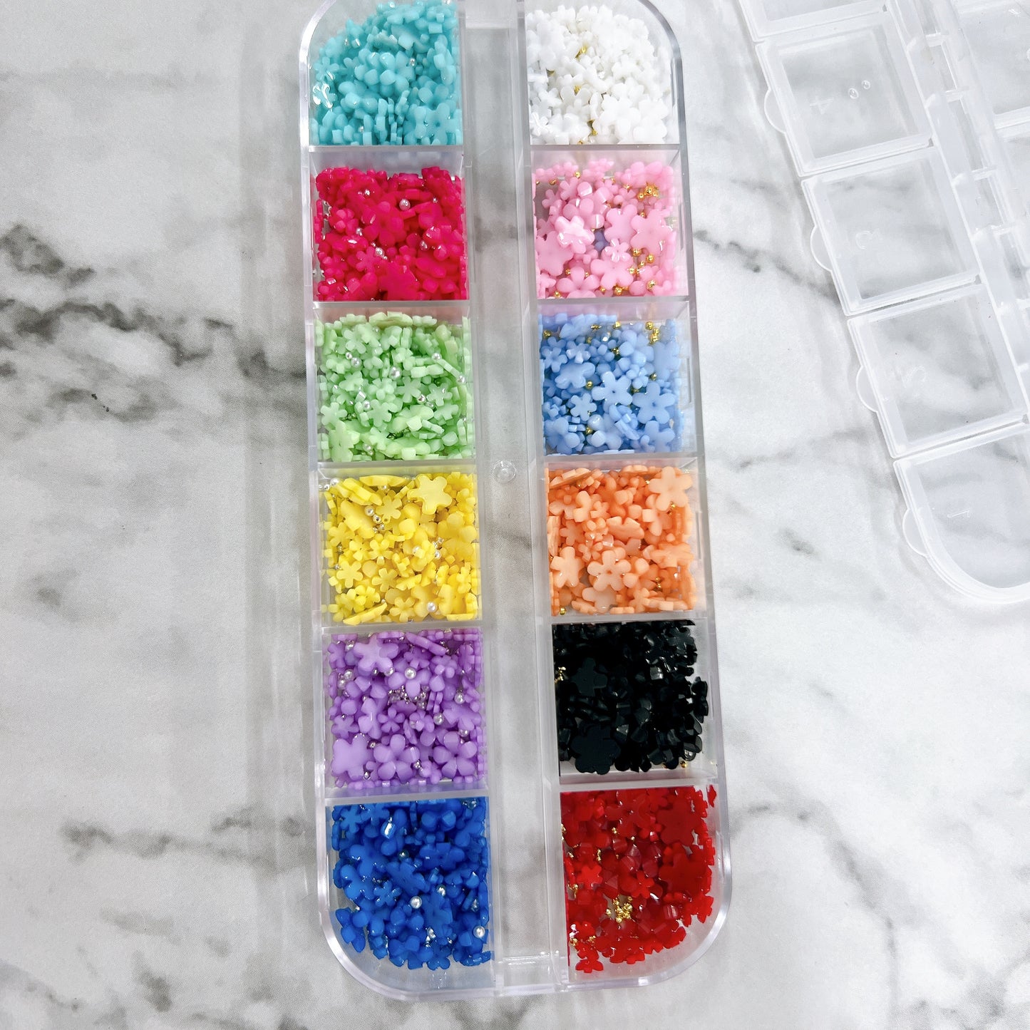 Mixed 12 colors of Mini Resin 3D Flower Nails or Pink and White