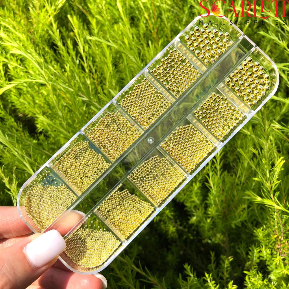 High Shine Metallic Gold Color 3D Nail Beads have a flawless metallic gold fine finish that enhances your nail art.